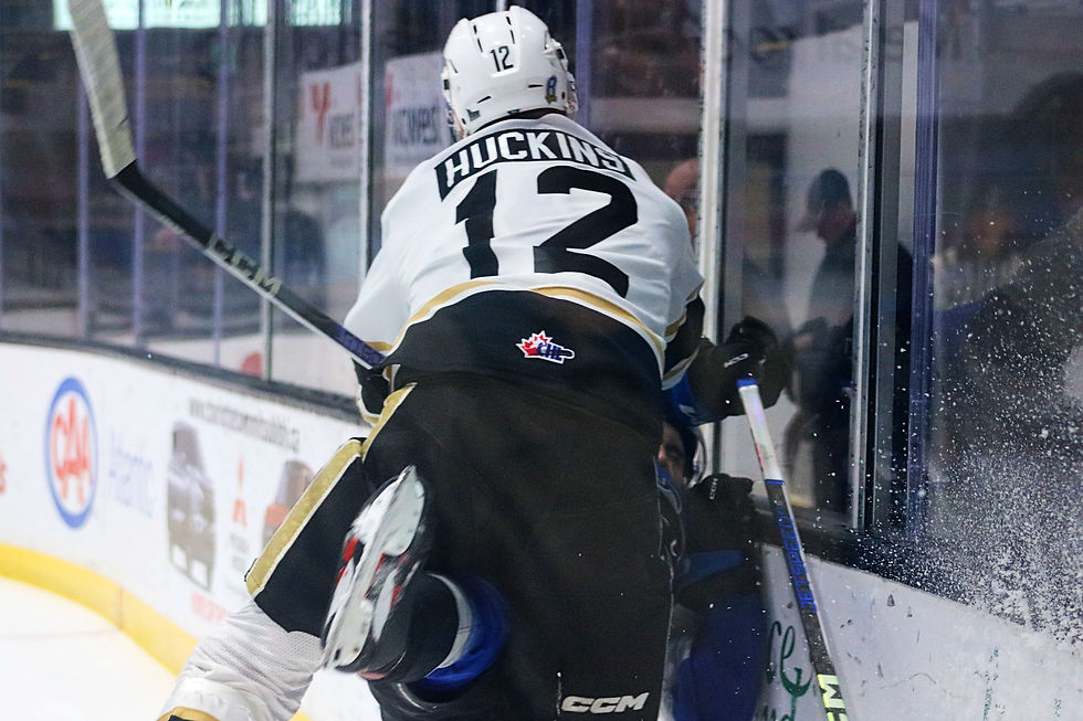 Charlottetown responded 18 seconds later, as rookie forward Kyle Powers rushed up the ice along the team's benches and fed a backhand pass in front of the net to Stratford native Simon Hughes, who scored his 17th goal of the season to make it a 4-1 game. Conrad collected the secondary assist.