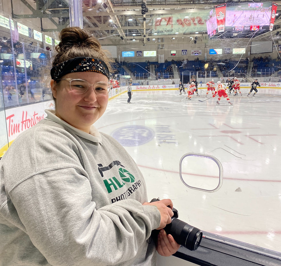 Emma Stewart works at Charlottetown Islanders hockey games as a freelance photographer for her own business HLE Photography.